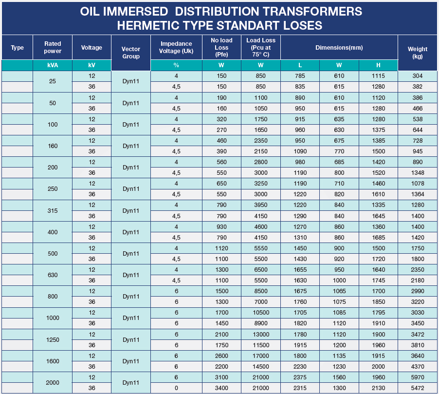 HERMETİK YAĞLI TİP DAĞITIM TRANSFORMATÖRLERİ